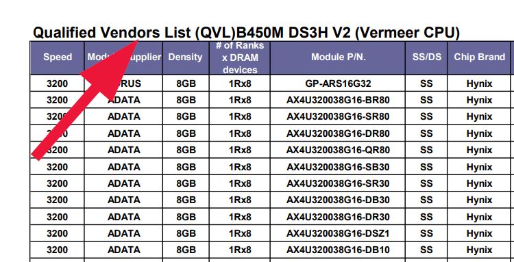 Ανάλογα με τη γενιά επεξεργαστή που διαθέτουμε, κατεβάζουμε το λεγόμενο “QVL” της μητρικής (Qualified Vendors List). Πρόκειται για μια λίστα με συγκεκριμένα μοντέλα μνημών, τις οποίες ο κατασκευαστής έχει δοκιμάσει στη συγκεκριμένη μητρική, και μας βεβαιώνει ότι λειτουργούν απροβλημάτιστα.