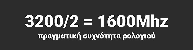 Προσοχή εδώ. Η πραγματική συχνότητα του ρολογιού μιας μνήμης είναι η μισή από αυτήν που θα δούμε να αναγράφεται στην αγορά. Μια μνήμη που πωλείται ως 3200MHz, έχει στην πραγματικότητα συχνότητα ρολογιού 1600MHz.